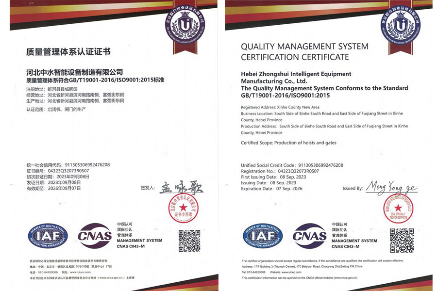 質(zhì)量管理體系認(rèn)證證書