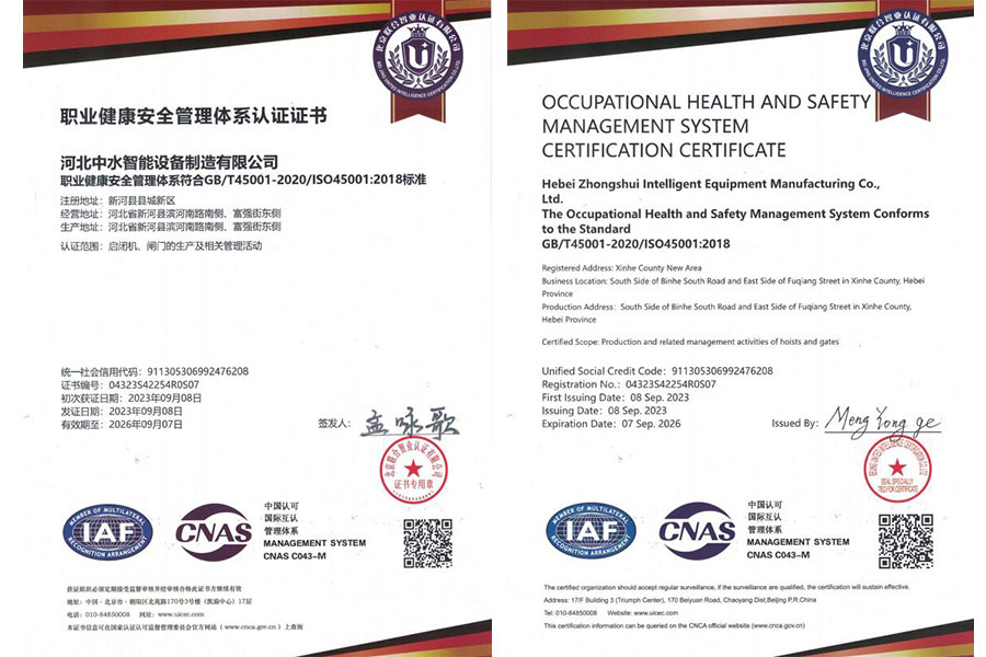 職業(yè)健康管理體系認(rèn)證證書