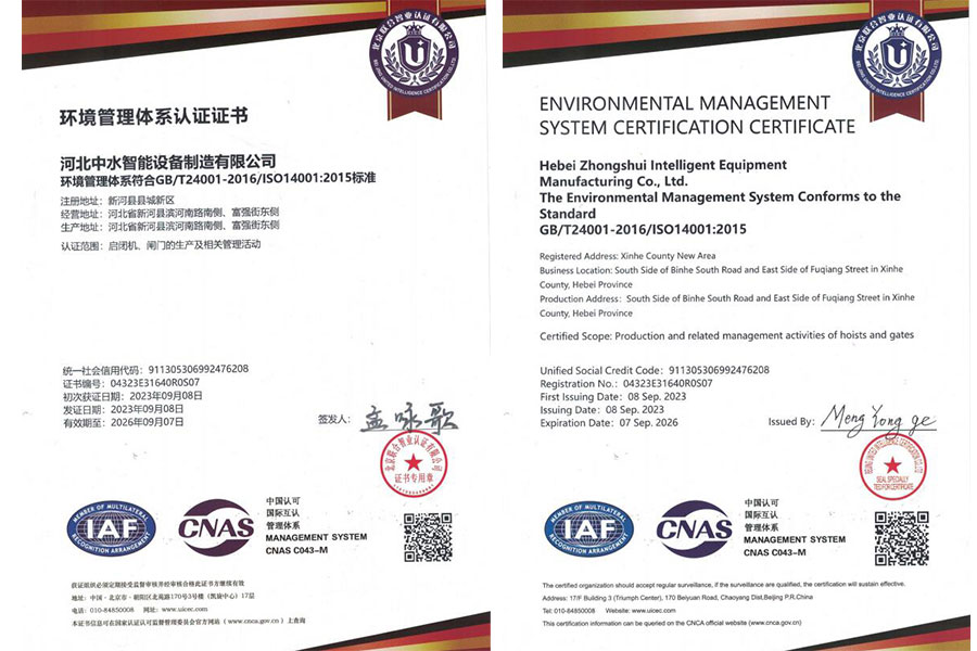 環(huán)境管理體系認(rèn)證證書